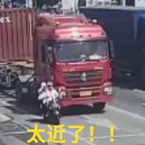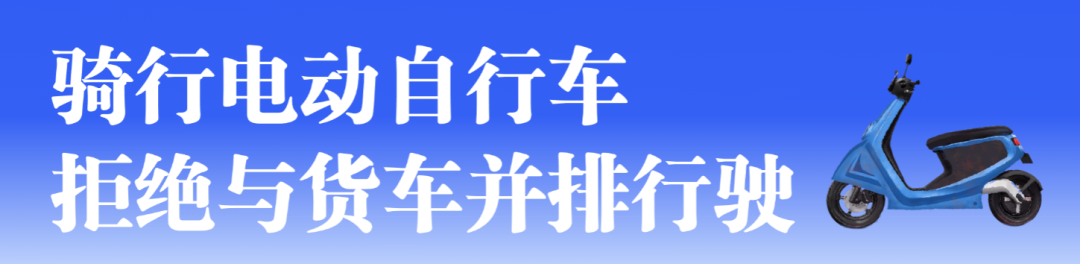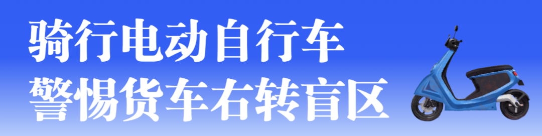 骑行电动自行车时应尽量远离正在转弯或准备转弯的大货车,避免陷入货车右侧“内轮差”盲区,等待其通过后再通行,不要抢道,更不要被“赶时间”“电动自行车够灵活”“可以侥幸避免风险”等错误观念冲昏脑袋。