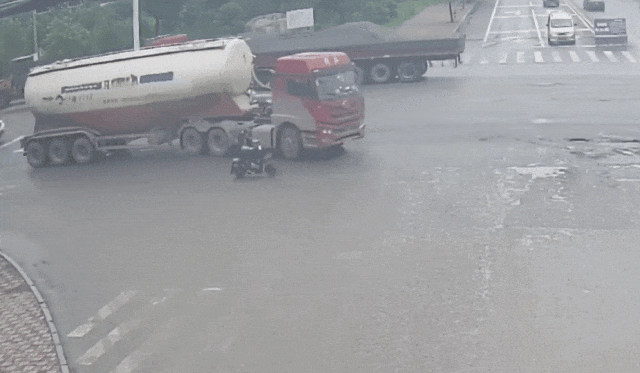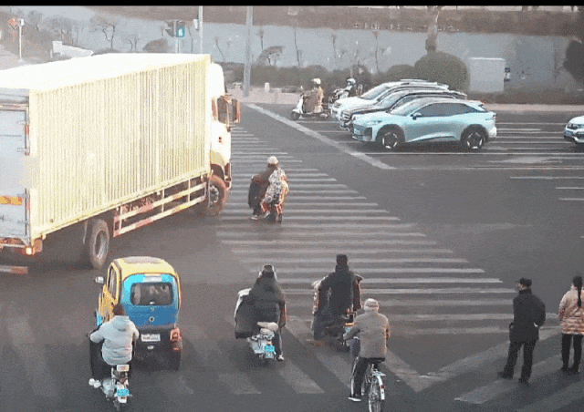 ▲杨某驾驶一辆重型厢式货车在十字路口右转弯时,与一辆直行通过路口的电动自行车发生碰撞,电动自行车驾驶人及乘坐人被卷入车底,重型厢式货车右后轮碾压电动自行车乘坐人的小腿导致骨裂,万幸无生命危险。
